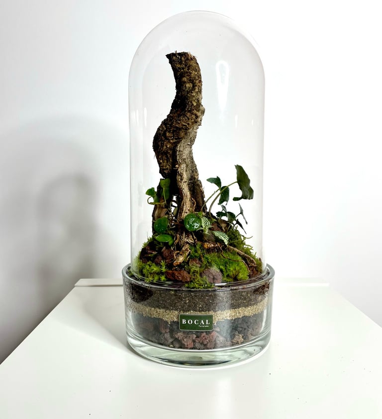 Chaque terrarium est une pièce unique, composé dans notre atelier à Clermont-Ferrand avec des matériaux naturels soigneusement sélectionnés.